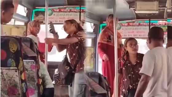 একই বাসের পেছনের সাড়িতে বসা এক যাত্রীর ধারণ করা ভিডিওতে দেখা যায়, ক্ষুব্ধ তরুণী সামনের সিটে বসা এক ব্যক্তিকে উত্তেজিত কণ্ঠে বলছেন, “তুই আমার পোশাক নিয়ে কথা বলবি কেন?”