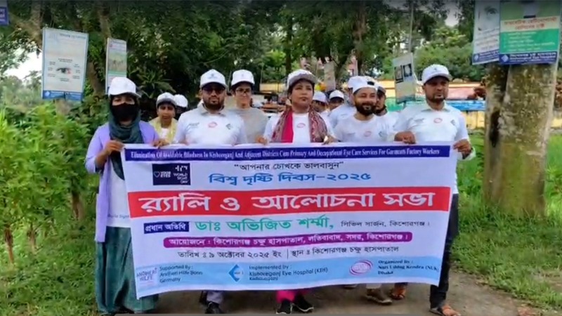 ‘আপনার চোখকে ভালোবাসুন’ এ প্রতিপাদ্যকে সামনে নিয়ে কিশোরগঞ্জে নানা আয়োজনে পালিত হয়েছে বিশ্ব দৃষ্টি দিবস। এ উপলক্ষে বৃহস্পতিবার (৯ অক্টোবর) সকালে কিশোরগঞ্জ চক্ষু হাসপাতাল থেকে একটি বর্ণাঢ্য র্যালি বের হয়।হাসপাতালের পরিচালক...