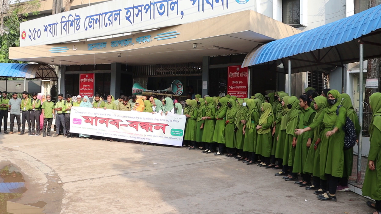 পাবনায় শিক্ষার্থী, নার্স-কর্মকর্তাদের মানববন্ধন
