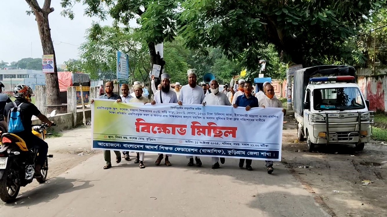 কুড়িগ্রাম ও যশোরে বাংলাদেশ আদর্শ শিক্ষক ফেডারেশনের বিক্ষোভ