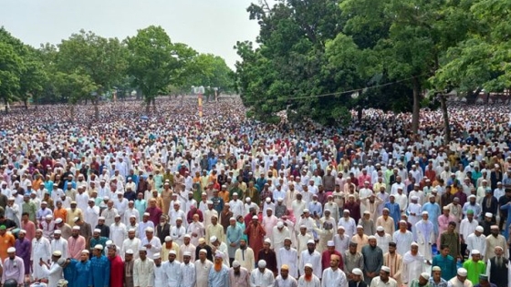 প্রতিবছরের মতো এবারও দেশের বৃহত্তম ঈদের জামাত অনুষ্ঠিত হয়েছে, কিশোরগঞ্জের ঐতিহাসিক শোলাকিয়া ঈদগাহ ময়দানে। প্রায় আড়াইশ বছরের পুরনো এ মাঠে এবার ছিল ঈদুল আযহার ১‘শ ৯৮ তম জামাত। জামাত শুরু হয় সকাল ৯টায়। এর আগে ভোর থেকে মুসল্লিরা দলে দলে আসতে থাকেন ঈদগাহের দিকে। দেশের দূর-দূরান্তের মুসল্লিরা শোলাকিয়ায় ঈদের জামাতে অংশ নেন। তবে কোরবানির আনুষ্ঠানিকতার কারণে এবার শোলাকিয়ায় মুসল্লির সমাগম ছিল কম। জামাতে মুসল্লিদের উদ্দেশ্যে বয়ান করেন মাওলানা আবুল খায়ের মোহাম্মদ সাইফুল্লাহ। বিশাল এ মাঠে ইমামতিও করেন তিনি।