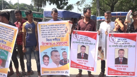কুষ্টিয়ায় সেনা অভিযানে পাঁচটি অস্ত্রসহ আটক তালিকাভুক্ত শীর্ষ সন্ত্রাসী জাহাঙ্গীর কবির লিপটনের বিচার ও জামিন বাতিলের দাবি জানিয়েছে স্থানীয়রা। কুষ্টিয়ায় বিক্ষোভ মিছিল ও সমাবেশ এ দাবি জানানো হয়েছে। আজ বুধবার সকাল সাড়ে ১১ টায় কুষ্টিয়া জেলা প্রশাসক কার্যালয়ের সামনে সচেতন নাগরিক সমাজের ব্যানারে এলাকার বিপুল সংখ্যক নারী পুরুষ এ কর্মসূচীতে অংশ নেন। পরে বিক্ষোভ মিছিল নিয়ে শহরের বিভিন্ন সড়ক প্রদিক্ষণ শেষে জেলা প্রশাসকের কার্যালয়ের সামনে সংক্ষিপ্ত সমাবেশ করেন তারা।