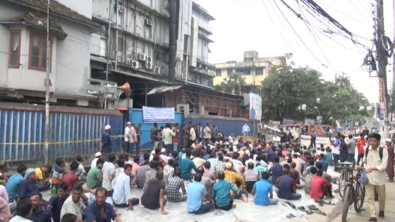 বরিশালের অপসোস্যালাই (ওএসএল) ফার্মা লিমিটেডের স্টেরিপ্যাক বিভাগের পাঁচশ শ্রমিক-কর্মচারীকে চাকরিচ্যুতকরার প্রতিবাদ ও চাকরি পুনর্বহাল করার দাবিতে সড়ক অবরোধ করে বিক্ষোভ করছে শ্রমিকরা।