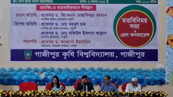 এবং জলবায়ু সহনশীল খাদ্য নিরাপত্তা নিশ্চিত করতে পুনর্জীবনমুখী কৃষি চর্চার বিকাশ। কৃষি, পরিবেশ খাদ্য নিরাপত্তাকে একসুতোয় গেঁথে আয়োজন বাংলাদেশের টেকসই উন্নয়ন লক্ষ্যমাত্রা (ঝউএং) অর্জনে নতুন দিগন্ত উন্মোচন করবে। এসময় ২০২৪ সালে ২৭ অক্টোবর দায়িত্ব গ্রহণের পর এক বছরে ভাইস- চ্যান্সেলরের নেতৃত্বে গাকৃবির অর্জন তুলে ধরেন তিনি। এসময় গাকৃবির কর্মকর্মা-কর্মচারী ছাড়াও গাজীপুরে কর্মরত বিভিন্ন প্রিন্ট ইলেকট্রনিক মিডিয়ায় সাংবাদিকরা উপস্থিত ছিলেন।